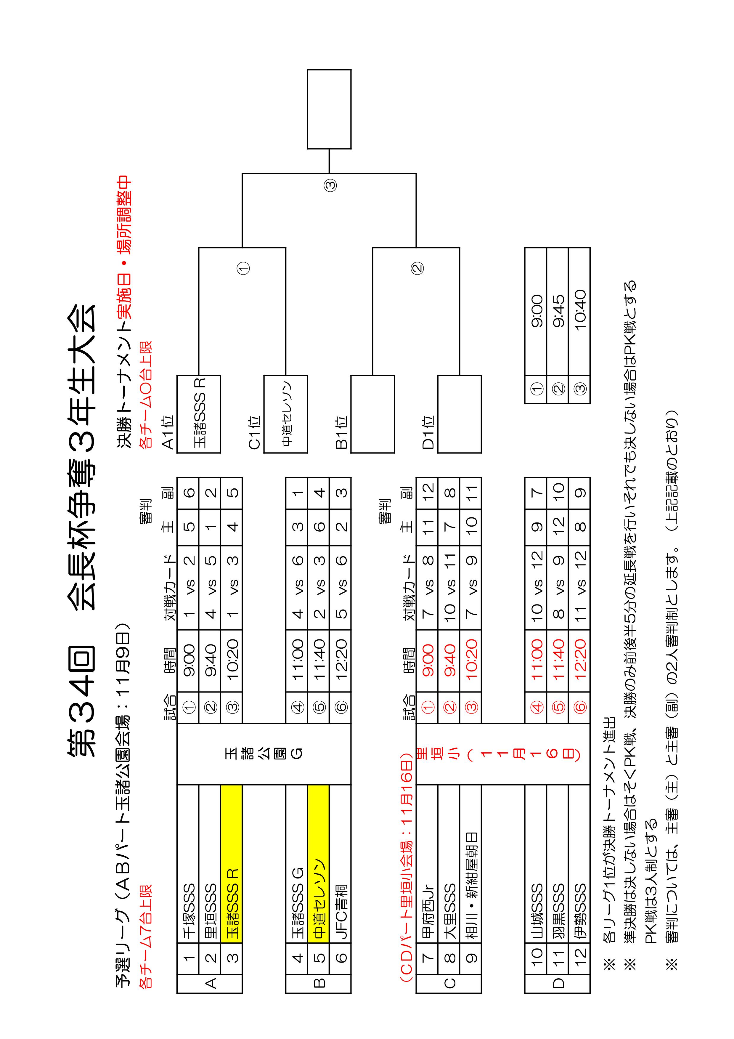 第34回会長杯争奪3年生大会初日結果及び日程変更について 2025.11.09