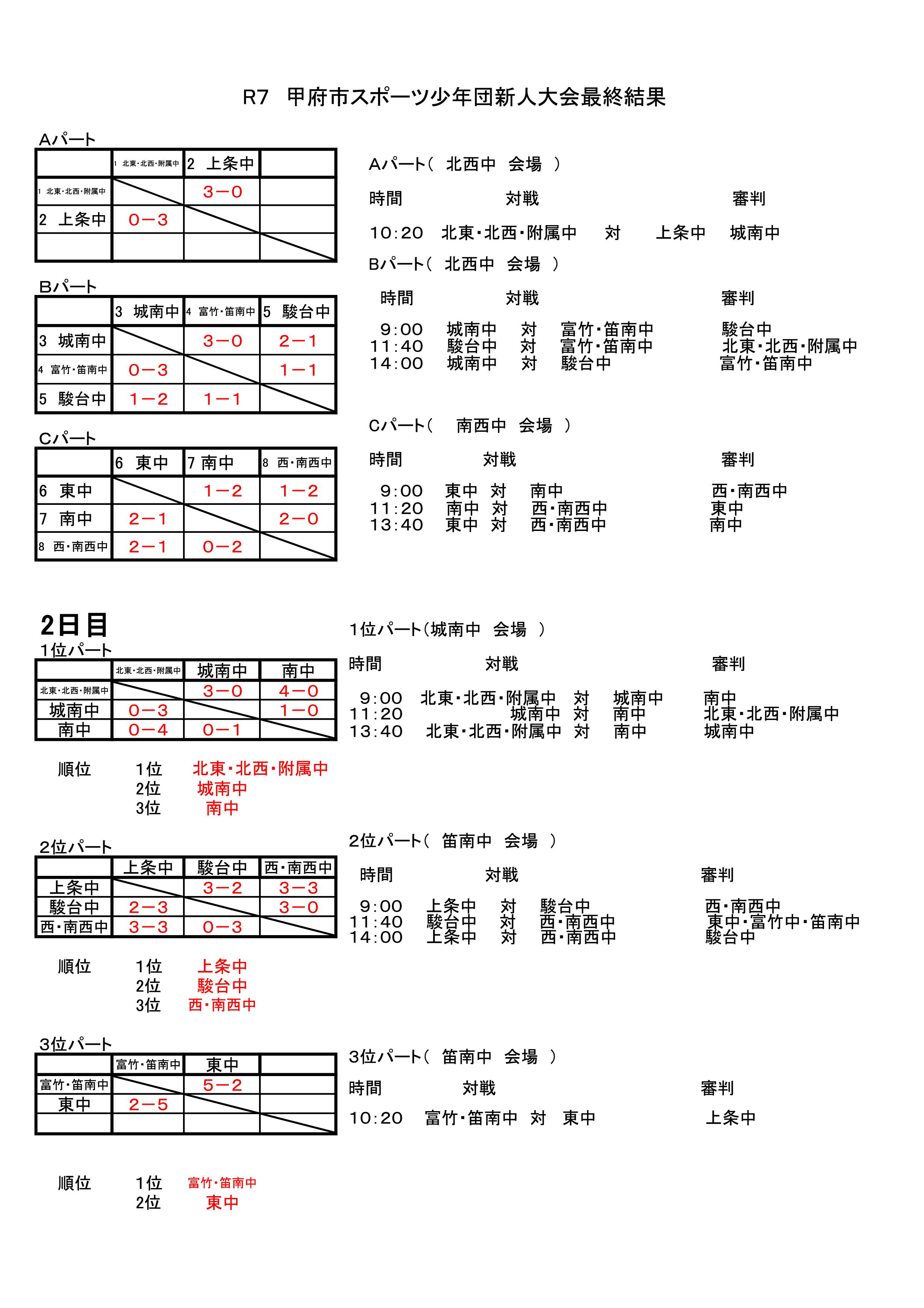 令和7年度甲府市スポーツ少年団新人大会結果 2025.12.31